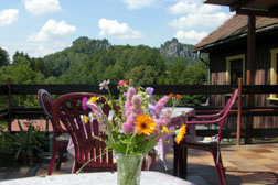Besonders beliebt ist die Sonnenterasse, von der Sie die wundervolle Aussicht zur Bastei und zur Rathener Felsenwelt, wie auch zum Gamrigfelsen genießen können. Frühstücken Sie hier bei schönem Wetter oder lassen Sie den Tag gemütlich bei einem Getränk aus der Hausbar ausklingen. |